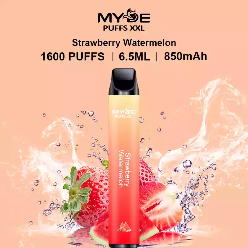 Pre-filled with 6.5mL of premium e-liquid and offering 2% nicotine strength, this device delivers a satisfying nicotine experience for those who prefer a moderate hit. The MYDE PUFFS XXL is available in 12 delicious flavors, ranging from fruity to refreshing, including Lush Ice, Strawberry Watermelon, and Cola Ice. There’s a flavor for every preference.