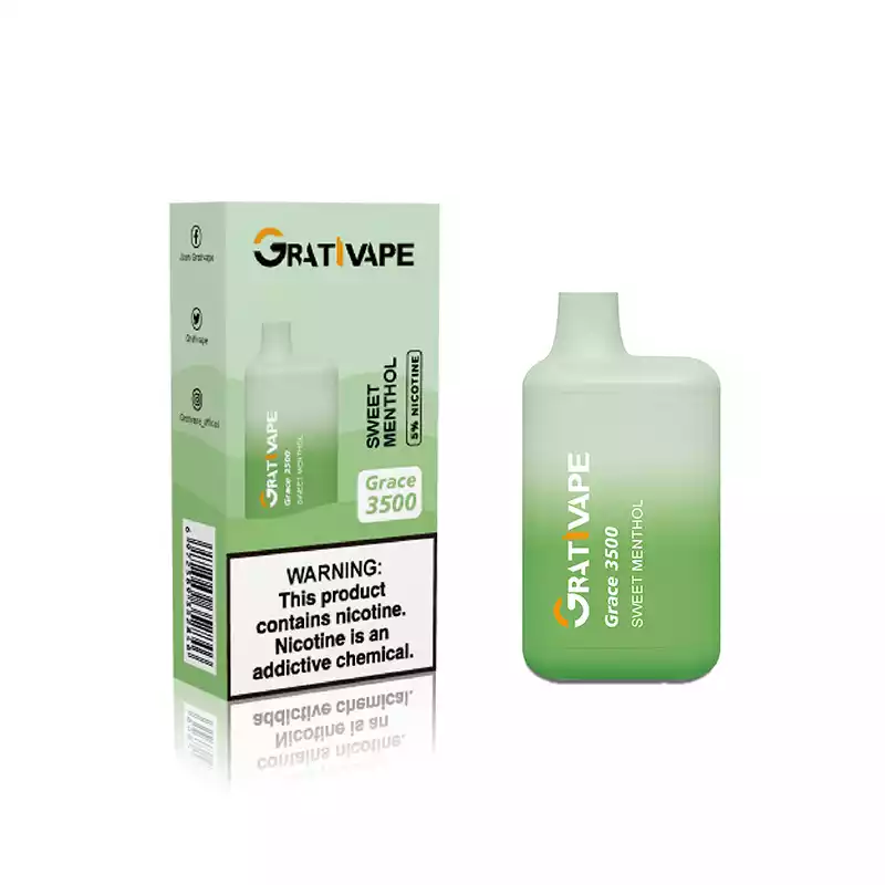 The Grativape Grace 3500 Puffs is the perfect combination of long-lasting enjoyment, rich flavor, and convenience. Whether you’re craving something refreshing like Watermelon Ice or something sweet and fruity like Peach Mango Watermelon, this device guarantees a flavorful and smooth experience. The Type-C rechargeable feature ensures that you’ll never be left waiting to vape, and the sleek, portable design makes it easy to carry wherever you go. Oh, and if you’re a fan of classic menthol, Sweet Menthol might be the perfect choice for you!
