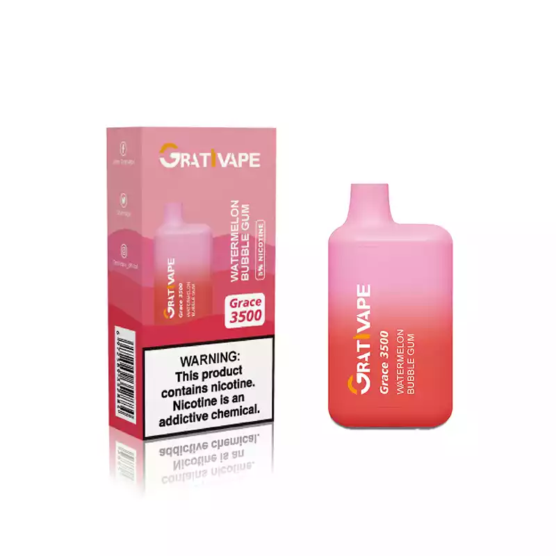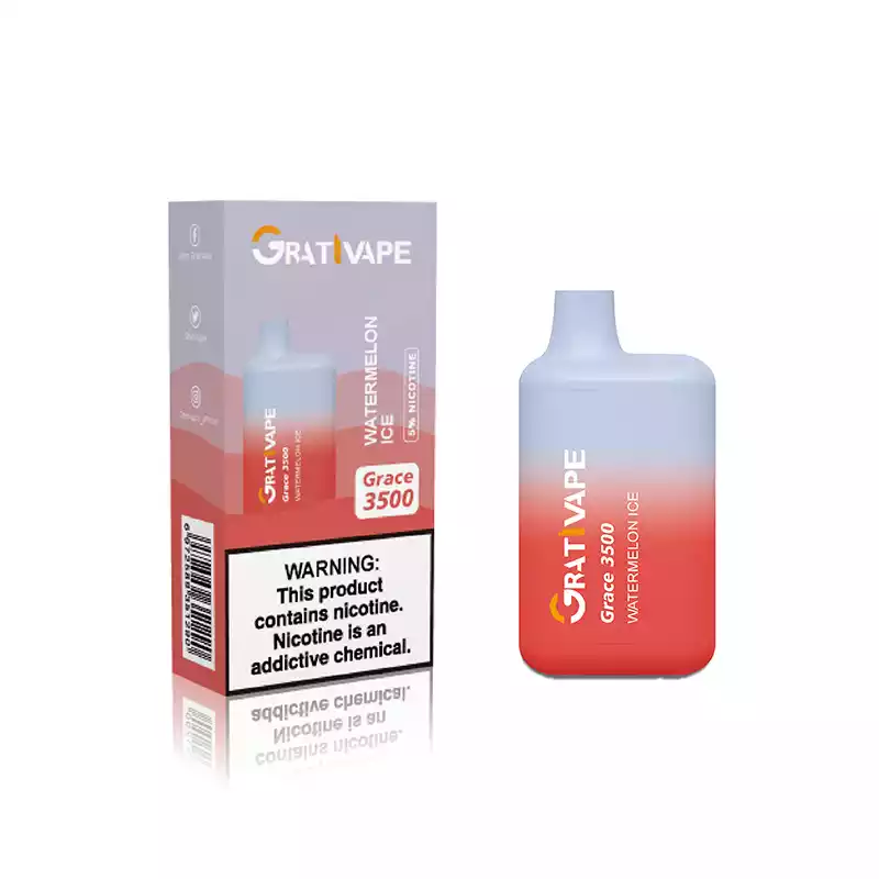 The Grativape Grace 3500 Puffs Disposable Vape Pen delivers up to 3500 puffs with 8mL of e-liquid and a 550mAh rechargeable battery. Available in 0% and 5% nicotine, it features Type-C charging for quick power-ups. Enjoy smooth, flavorful vapor with 10 unique flavors like Mint Tobacco, Watermelon Ice, and Peach Mango Watermelon—perfect for long-lasting, on-the-go vaping satisfaction.