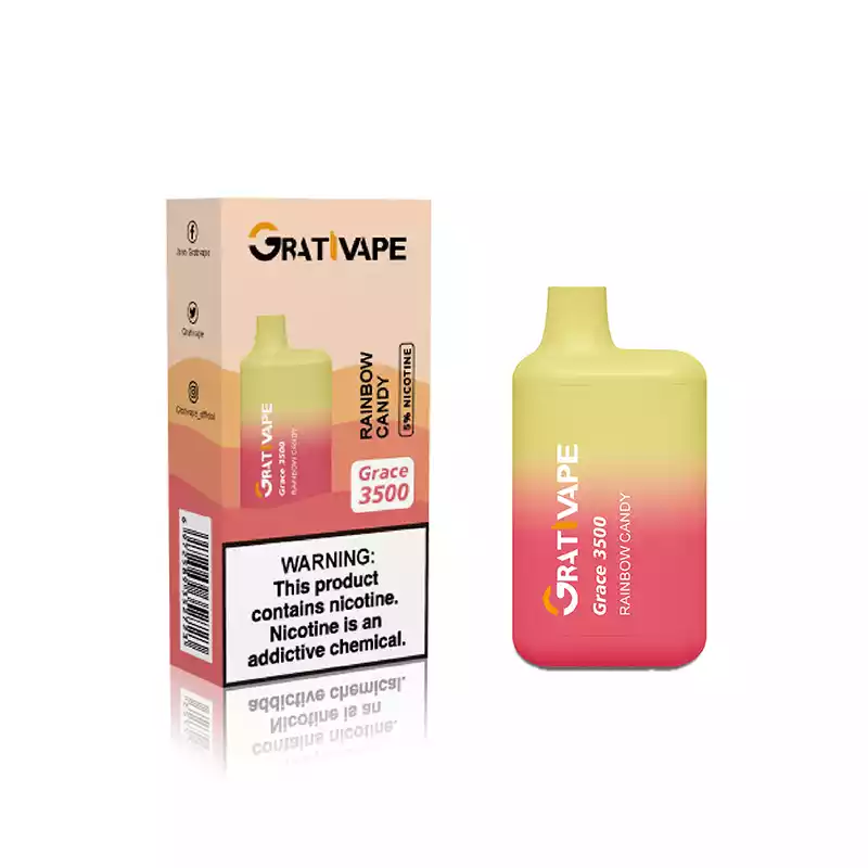 With 10 delicious flavors to choose from, including classics like Mint Tobacco and Peach Ice, the Grativape Grace offers something for every taste. From refreshing Watermelon Ice to the sweet, tangy Rainbow Candy, you’ll find a flavor to suit your mood.
